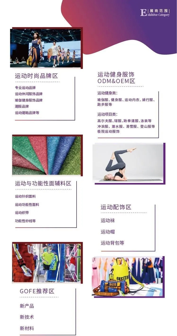 為了滿足運(yùn)動消費(fèi)群體擴(kuò)容及消費(fèi)訴求升級,GOFE 2023展示品類細(xì)分為五大類,包括運(yùn)動時尚品牌、運(yùn)動健身、運(yùn)動項(xiàng)目類、運(yùn)動配飾、運(yùn)動與功能性面輔料,一站式為運(yùn)動時尚行業(yè)專業(yè)人士展示新產(chǎn)品、提供新趨勢、發(fā)掘新商機(jī)。