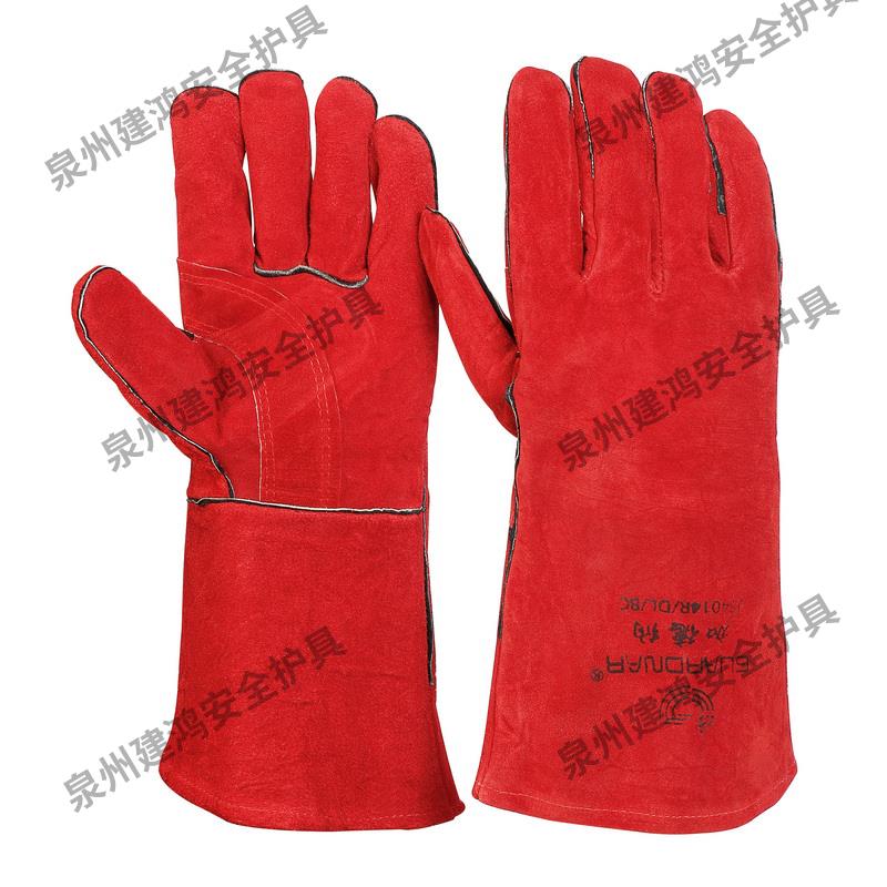 隔熱焊工防護(hù)手套,梔形拇指,牛皮加強(qiáng)掌面,加長(zhǎng)袖口長(zhǎng)14cm,可有效防護(hù)機(jī)械風(fēng)險(xiǎn),防火防燃、抗傳導(dǎo)熱與接觸熱,同時(shí)可防止小滴熔化金屬濺射。