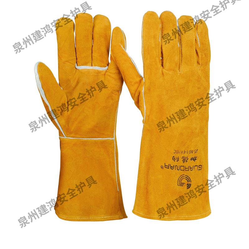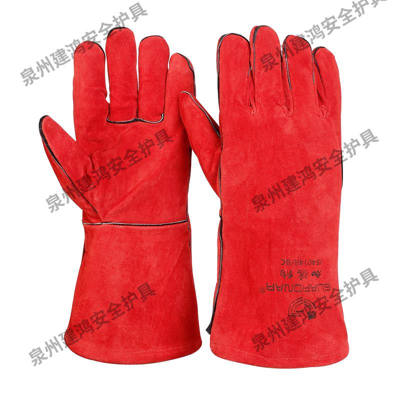 隔熱焊工防護(hù)手套,梔形拇指,牛皮加強(qiáng)掌面,加長袖口長14cm,可有效防護(hù)機(jī)械風(fēng)險(xiǎn),防火防燃、抗傳導(dǎo)熱與接觸熱,同時(shí)可防止小滴熔化金屬濺射。